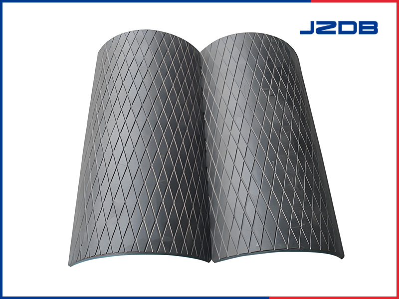 描   述: 由瓦殼式膠板通過螺栓與滾筒連接、瓦殼式膠板由耐磨膠層和金屬硫化而成,厚度為18mm和21mm。